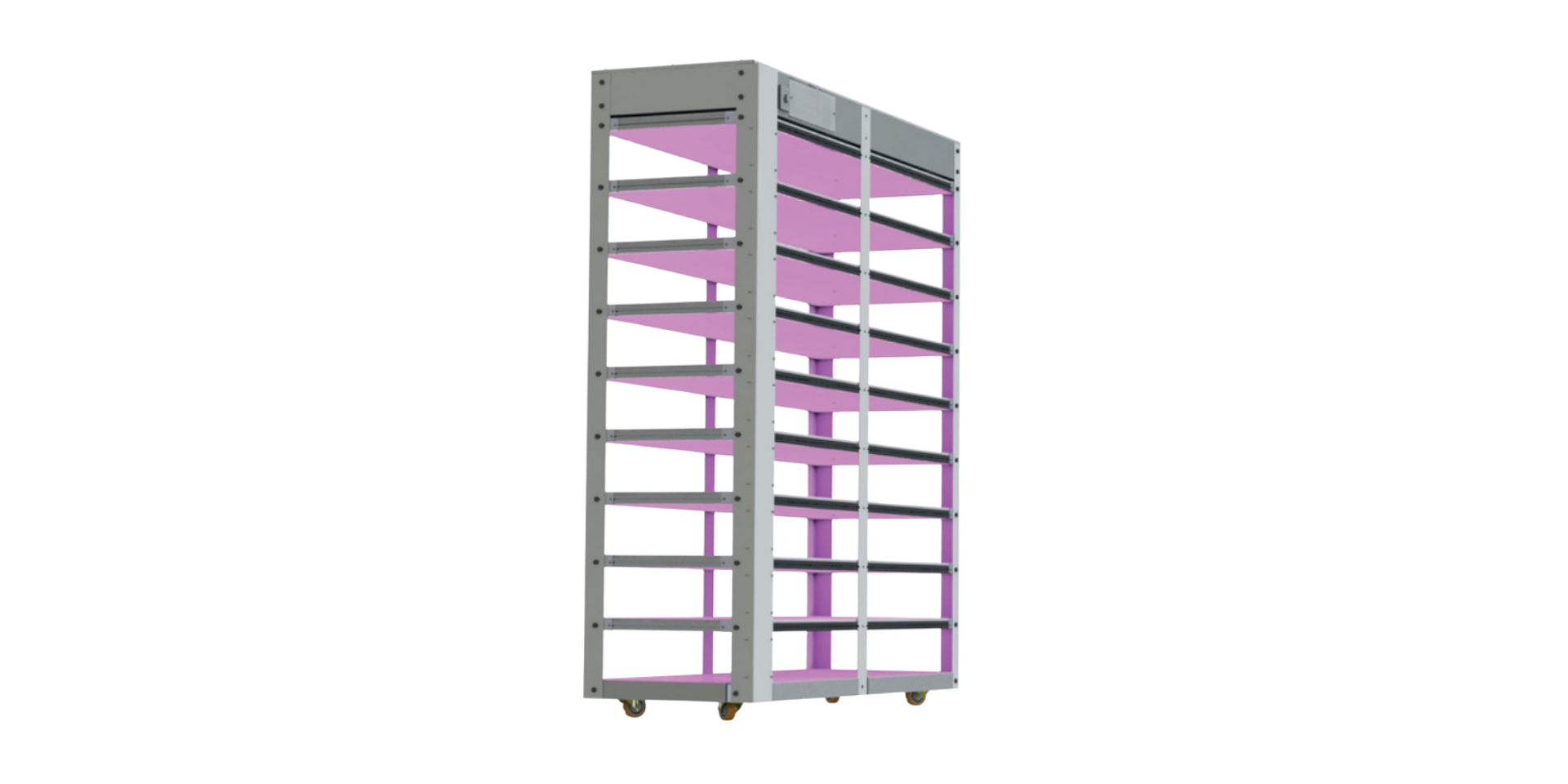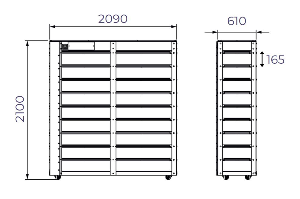 The compact structure with narrow layers enables maximum production capacity in limited spaces. Thanks to its plug & play design, installation is quick and effortless. The washable and maintenance-free construction ensures hygienic, long-lasting, and reliable operation. Manual dimming and optional 0–10V / PWM control provide precise lighting adjustment for different growth stages.