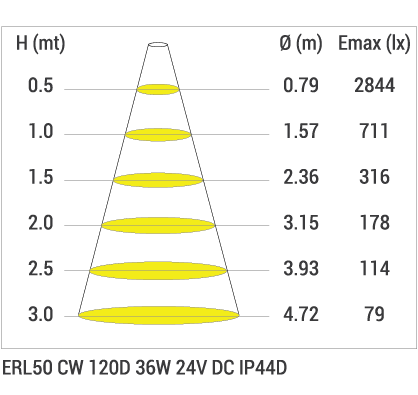 | ERL50 | WW-NW-CW | 24V DC | 36 | 2.160 | 1,6 |