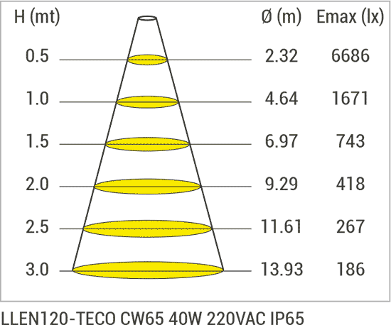 | LLEN160-TECO | WW-NW-CW | 220-240V AC | 40 | 4.400 | 1624 | 3,5 |